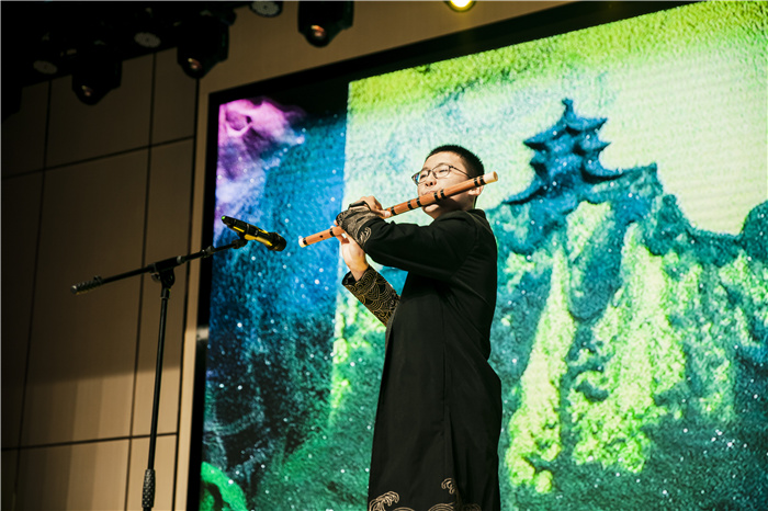 晚会在歌舞《幸福中国一起走》中拉开序幕,歌曲《啊!中国的土地》《红船》《我爱你,中国》《为友谊干杯》《绒花》,舞蹈《春》《希格希日》,情景剧《泪蛋蛋腌出忠魂曲》,器乐《花儿为什么这样红》《幽兰逢春》《兰陵王入阵曲》《战马奔腾》,合唱《春风十万里》等节目精彩纷呈,通过群众喜闻乐见的艺术展演形式,充分弘扬社会主义核心价值观和爱国情怀,让大家在欢声笑语中感悟党的历史、重温党的功绩、抒发爱党爱国情怀,使“喜迎二十大 奋进新征程”更加深入人心。艺术学院师生专业的演出,饱满的感情,感染了在座的每一位观众,现场掌声不断,晚会在歌舞《筑梦中国》的激昂旋律中圆满落幕。