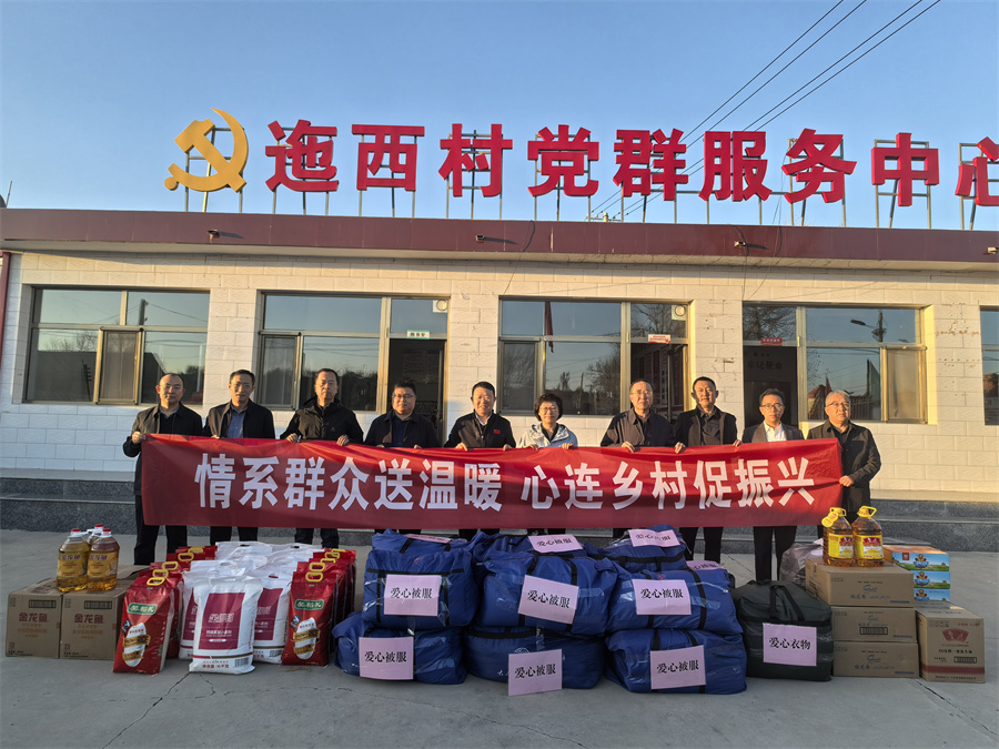 会后,校领导向村民捐赠慰问品,并与全体工作队员合影留念。