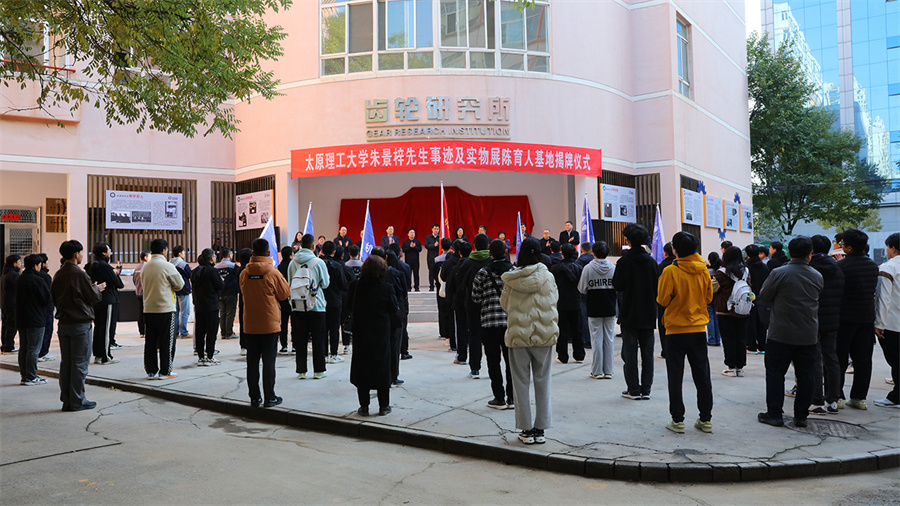 10月31日上午,由机械工程学院主办的太原理工大学“朱景梓先生事迹及实物展陈育人基地”揭牌仪式暨弘扬科学家精神座谈会在迎西校区举行。校党委常委、副校长王志华出席相关活动。朱景梓先生女儿朱培颖、女婿张国钧,重庆大学机械与运载工程学院副院长、高端装备机械传动国家重点实验室副主任魏静教授,中国机械总院郑机所传动科技有限公司副总经理徐文博研究员,山西省平遥减速器有限责任公司总工程师闫焕景高工,原机械工程学院副院长任家骏教授,朱先生学生、原我校齿轮研究所所长王铁教授,原齿轮研究所实验员蒋志伟、秦旭平受邀参加相关活动。学校相关部门负责人,机械工程学院领导班子,各科室、系部中心师生代表参加活动。
