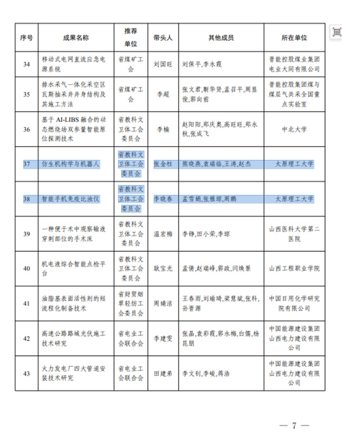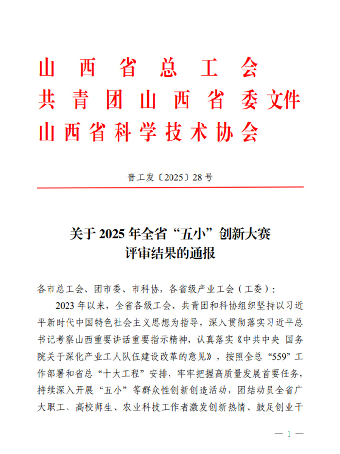 近日,山西省总工会发布了《关于2025年全省“五小”创新大赛评审结果的通报》,我校教职工荣获一等奖3项、二等奖3项、三等奖2项。其中,机械工程学院张金柱等人研究的“仿生机构学与机器人”成果、人工智能学院李晓春等人研究的“智能手机免疫比浊仪”成果、物理与光电工程学院肖连团等人研究的“AI赋能透过水下复杂介质实时光学成像”成果获一等奖,太原理工大学获评“优胜单位”荣誉称号。近年来,我校认真贯彻落实上级“五小”竞赛活动实施意见,...