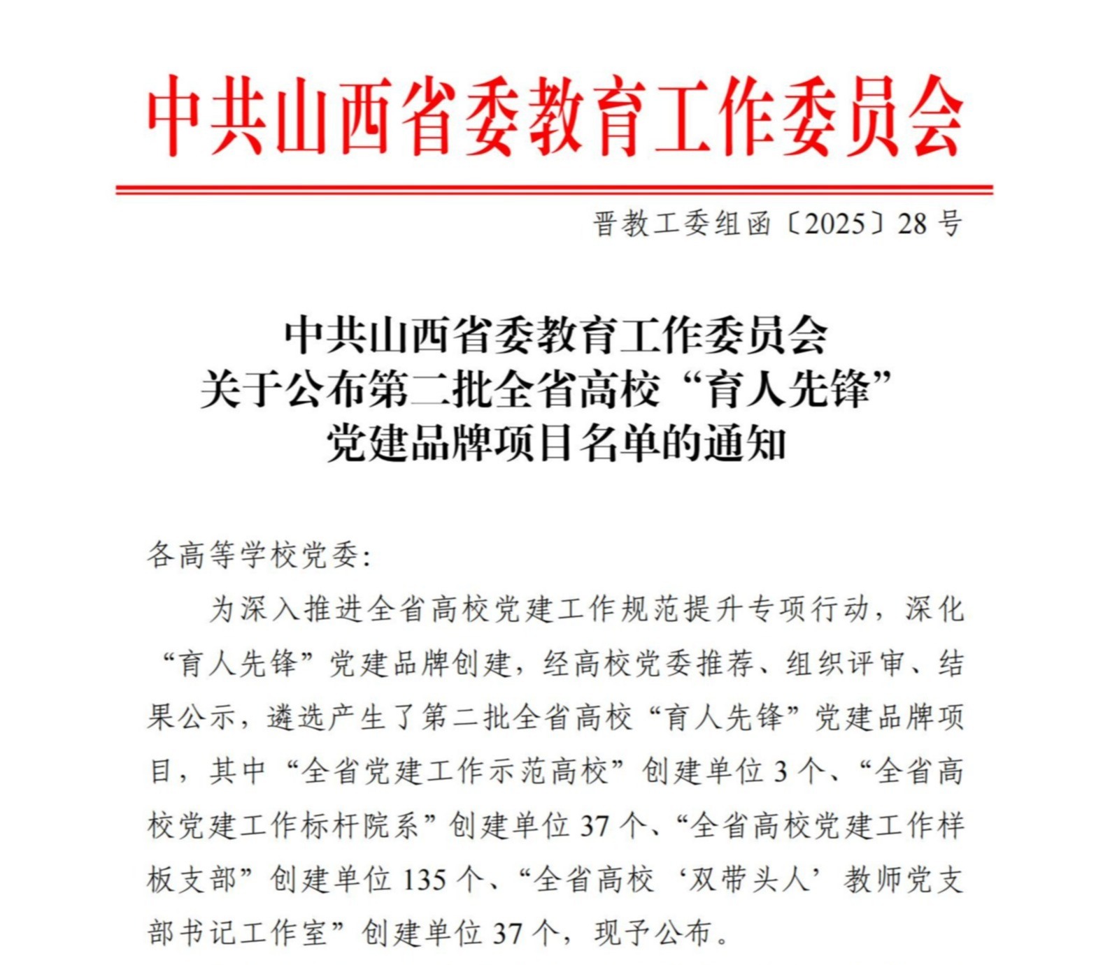 近日,省委教育工委正式公布了第二批全省高校“育人先锋”党建品牌项目名单,我校再获佳绩,共有7个项目成功入选。