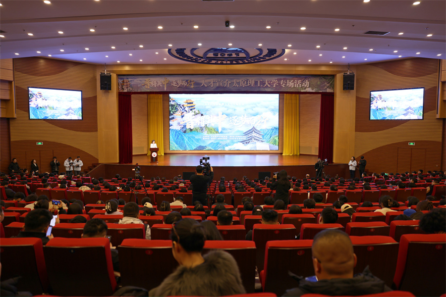 晋中市委常委、组织部长李文兵作主旨宣介,全面介绍了晋中市得天独厚的自然风光、底蕴深厚的人文历史、蓬勃向上的经济社会发展态势,以及本次人才引进的重点岗位布局等核心信息,向高校学子发出 “逐梦晋中” 的诚挚邀约。介休市委书记任光耀,太原理工大学优秀校友代表、介休市洪山镇党委书记王朝容分别发言,从地方发展实践和校友成长经历出发,分享了在晋中干事创业的良好环境与广阔前景。