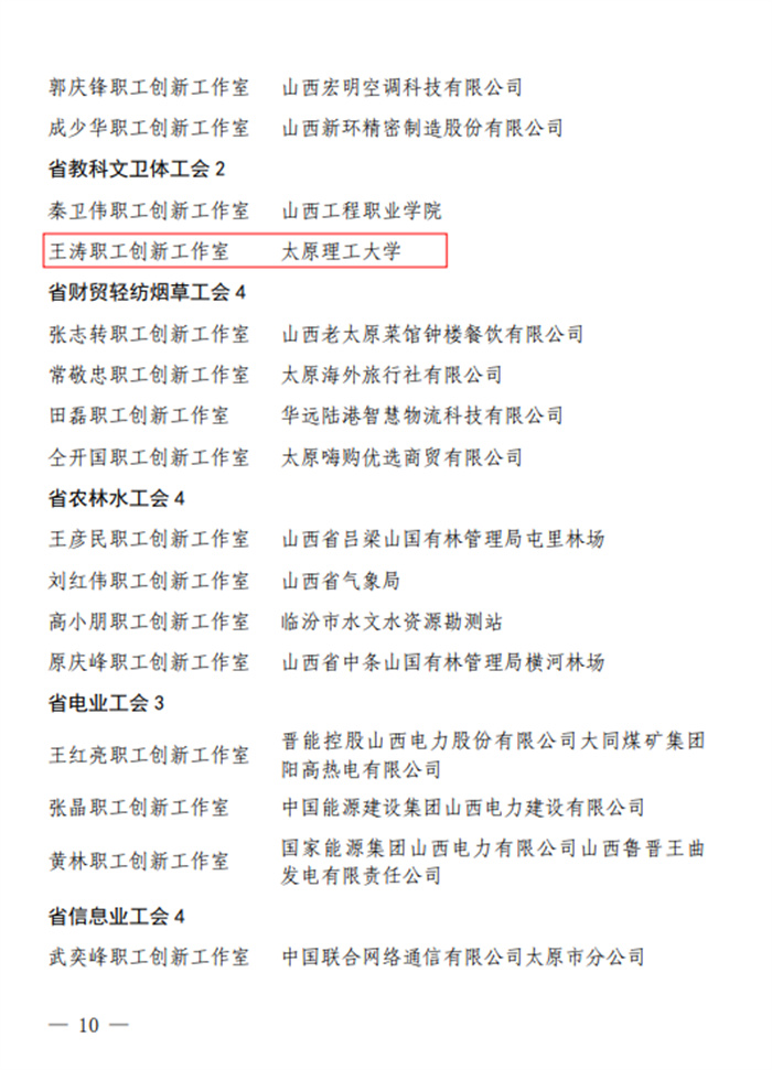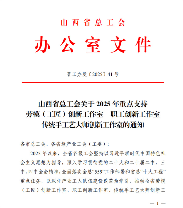 近日,为进一步激励广大劳模(工匠)更好发挥示范带头作用,推动深化产业工人队伍建设改革举措落地见效,山西省总工会下发《山西省总工会关于2025年重点支持劳模(工匠)创新工作室 职工创新工作室 传统手工艺大师创新工作室的通知》,我校王涛职工创新工作室获评省级职工创新工作室并获重点支持。王涛职工创新工作室把国家重大需求和企业攻关项目中的关键技术凝炼为科技创新项目,构建了“材料-工艺-装备”全流程研发和育人体系,在冶金装备智能化与特种机器人技术、...