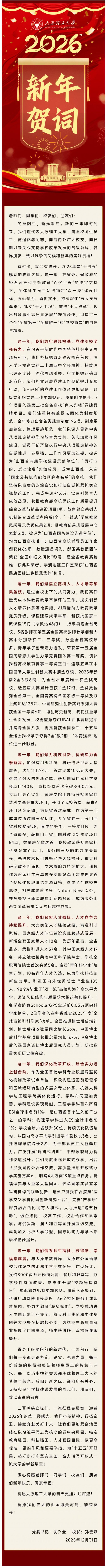 太原理工大学2026年新年贺词