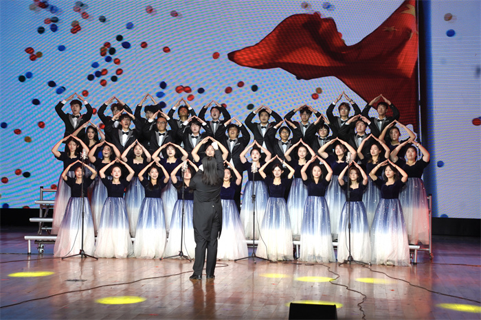 夜色盈庭,灯火璀璨,一个个独具匠心的节目将美好的新年祝福送达到现场每一位师生的心中。明向校区元旦晚会在器乐合奏《强国组曲》的恢宏旋律中缓缓拉开序幕。晚会分为“序章·初绽风华”“华章·艺彩清泽”“新章·逐光前行”三个篇章,异彩纷呈,精彩不断。歌伴舞《美丽中国》展现山河壮丽、赤子深情;民乐合奏《雅韵迎春》奏响英雄豪情;戏曲《四郎探母·坐宫》以醇厚西皮唱腔,道尽家国大义;朗诵《逐光而行 再谱华章》礼赞百年学府育英哺才的初心坚守;体操《我爱你中国》生动诠释国运与体育同兴、国家与体育共强;舞台剧《竹节海棠》让“栾茀精神”在新时代继续回响;舞蹈《THIS IS ME》和歌伴舞《青春正现在》唱响青年心声,道尽青春韶华正好、逐梦大有可为的昂扬之志;舞蹈《希格希日》和《额尔古纳河》以优美舞步展现民族风韵;舞蹈《魅力之舞》和《丝路欢歌》回溯文明交流交往交融之路。大合唱《国家》将现场气氛推向顶点,青年学子以赤诚之声诉家国情怀,用青春之力扛时代之责,为晚会画上圆满的句号。