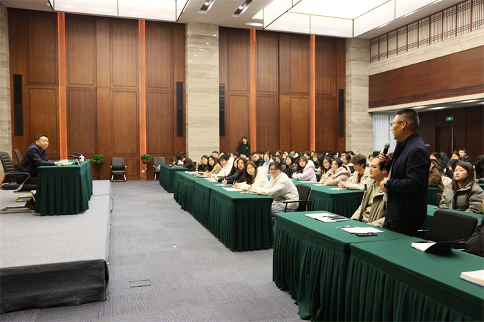 课堂上,师生围绕“十五五”期间发展、教育科技人才一体推进、AI时代高校辅导员角色转型、引进人才在晋发展支持政策、海归人才项目专项经费配套等现实关切问题展开提问。问题涵盖国家战略理解、思想政治教育创新、人才成长路径及地方发展融合等多个维度,体现出广大师生对国家大政方针与个人成长发展的深入思考。