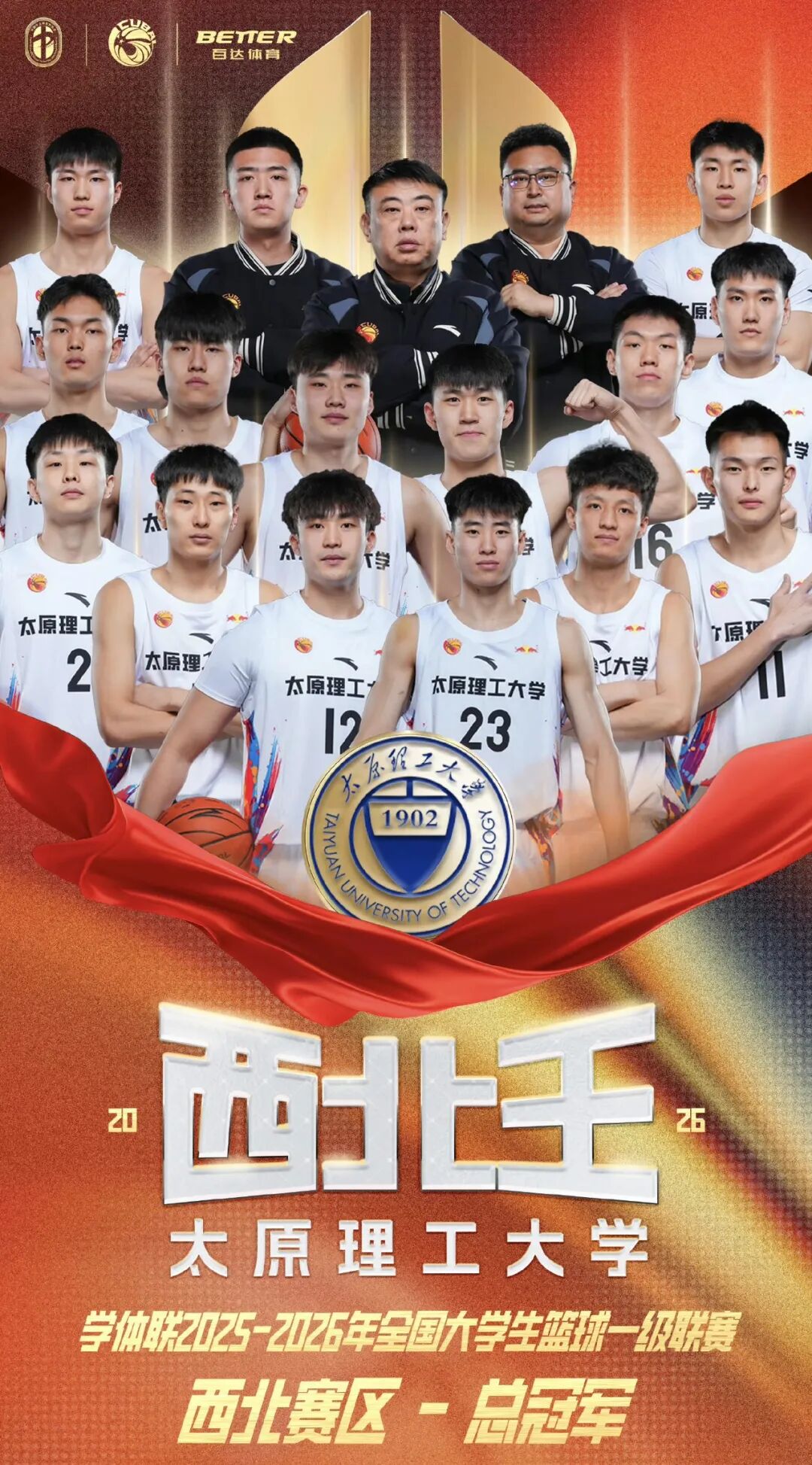 3月30日,2025-2026赛季CUBAL中国大学生篮球联赛一级联赛西北赛区决赛在西安圆满落幕。我校男篮在备受瞩目的“山西德比”巅峰对决中,以93:73力克山西大学,队史第19次加冕西北赛区冠军,续写“西北王”传奇,强势挺进全国赛。