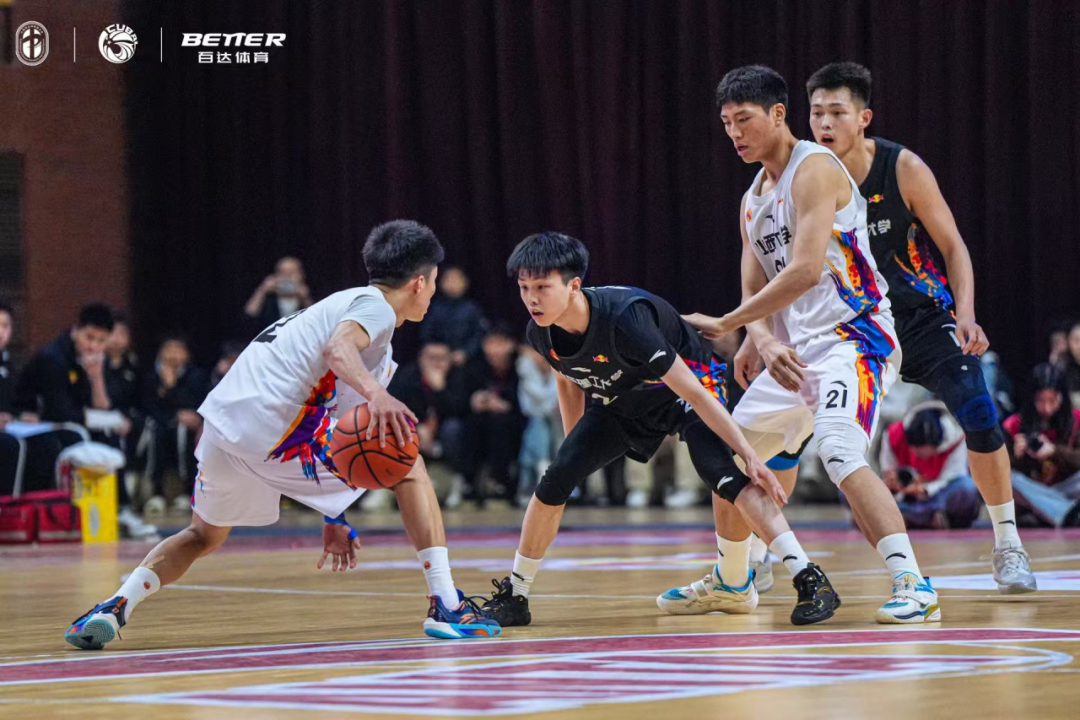本届赛事,我校男篮展现出压倒性实力,以8战全胜的不败战绩横扫赛区,淘汰赛阶段先后战胜山西师范大学、西安电子科技大学、西北工业大学,决赛前7战场均净胜对手63分,攻防两端尽显统治力。决赛面对同省劲旅山西大学,队员们沉着应战、战术执行坚决。