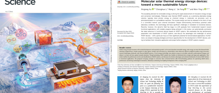 近日,该团队在能源与环境领域顶刊《Energy & Environmental Science》发表封面综述(Energy Environ. Sci., 2025, 18, 8990-9017)。文中系统梳理蒽、二氢薁 / 乙烯基庚二烯、降冰片二烯 / 四环烷、偶氮苯四种太阳能热燃料,及其半衰期、储能密度等关键性能参数。重点总结该类燃料功能器件在太阳能捕获、转换与释放的应用进展,探讨技术可行性与经济性,指明器件化核心挑战,并提出阳光驱动储能、多样化诱导放热、规模化合成等前沿策略。这些策略有望突破技术瓶颈,为器件优化与创新提供指引,推动领域跨越式发展。论文通讯署名第一单位为太原理工大学,青年教师徐兴堂博士为第一作者,2025级博士生李崇华为第二作者,李文英教授为唯一通讯作者。
