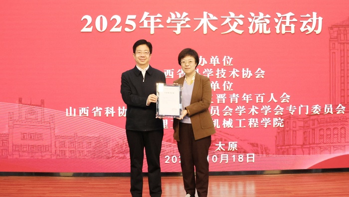 10月18日,由山西省科协主办,“科创中国”三晋青年百人会、山西省科协第九届常务委员会学术学会专门委员会和太原理工大学机械工程学院共同承办的“科创中国”三晋青年百人会2025年学术交流活动在我校迎西校区成功举办。山西省科协党组成员、副主席王继龙出席会议并为报告专家颁发证书。山西省科协学会部部长杨茹主持活动开幕式。三晋青百会会员、省级学会青年科技工作者及太原理工大学机械工程学院学生等共计100余人参加了会议。