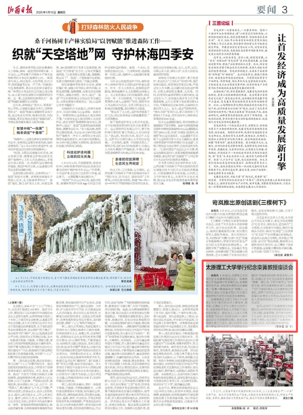 为深切缅怀著名教育家、我校杰出前辈栾茀教授,大力弘扬其忠诚于党的教育事业、无私奉献的崇高精神,1月12日上午,“弘扬教育家精神 纪念栾茀教授座谈会”在我校明向校区行政楼鹏飞会堂隆重举行。校领导沈兴全、肖连团、任喜莹、王志华、王丽君,栾茀教授三子栾晶先生等亲属代表,栾茀教授学生代表、我校退休教师苗茂谦教授,“栾茀—魏蕴瑜基金”捐赠人、山西天汇通电力设备有限公司总裁王成先生,以及我校师生代表等70余人齐聚一堂,...