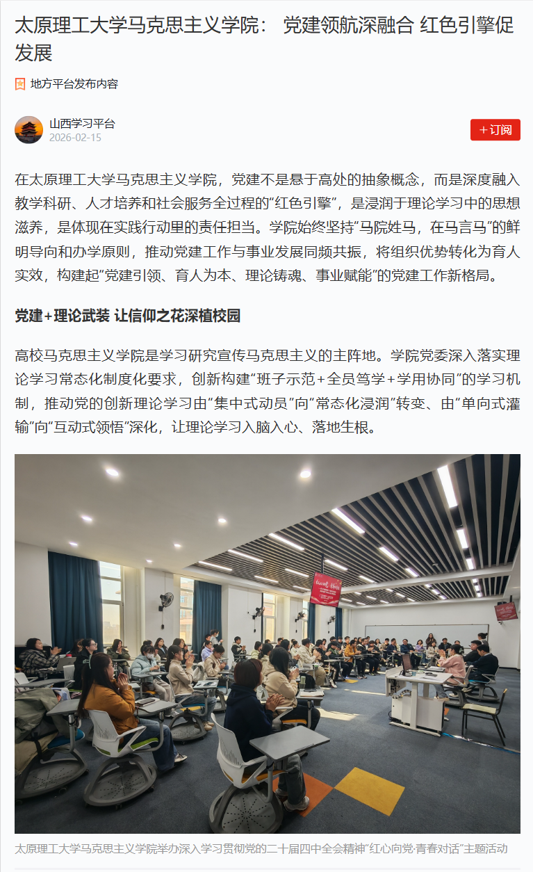 太原理工大学马克思主义学院:党建领航深融合红色引擎促发展