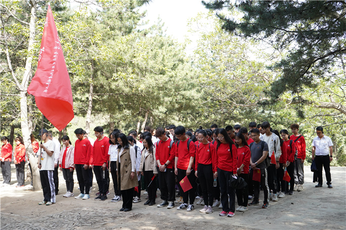 苍松翠柏寓精神,绿荫掩映忠烈魂。此次研学实践团一百余人前往黄崖洞保卫战烈士陵园缅怀革命先烈。