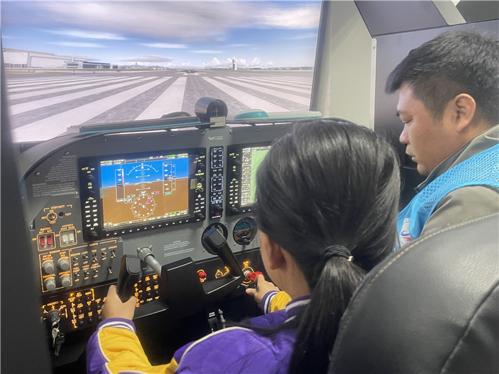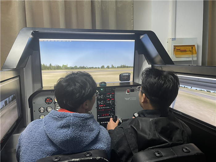 活动的最后,学院组织大家参观了形式多样的模拟飞行平台,从塞斯纳-172到空客A320机型,还进行模拟飞行体验。在专业教师指导下,大家认真学习飞行基本要领,了解飞机仪表操作系统。在实际体验时,大家身临其境,沉浸感愈发强烈,仿佛翱翔于蓝天白云之间,深切感受到科技发展的魅力。