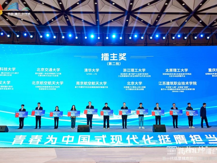 作为全国青年科技领域的顶级赛事,此次赛事由共青团中央、中国科协、教育部、中国社会科学院、全国学联联合主办,吸引了清华大学、北京大学等378所高校1250余支团队、2万余名青年科技人才同台竞技。赛事规模位居全国8个擂台赛第2,奖金总额超500万元。大赛聚焦新一代信息技术领域关键核心技术,发布21个前沿榜题,最终包括我校团队在内的23支团队脱颖而出摘得“擂主”桂冠。