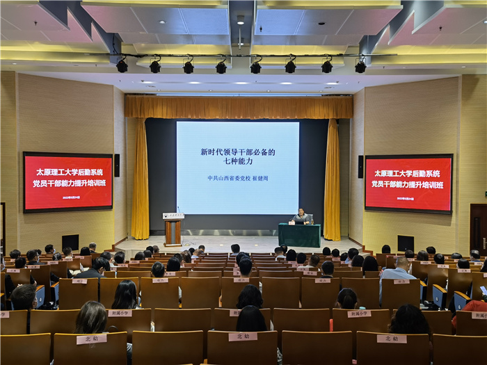 为进一步加强后勤系统党员干部队伍建设,深刻学习领会并坚决贯彻落实习近平新时代中国特色社会主义思想,持续巩固拓展党史学习教育成果,不断提升党员干部的综合素质和工作能力,引导党员干部提高政治能力、强化宗旨意识,后勤系统党委组织党委委员、副科级以上党员干部、各党支部委员会成员以及各单位业务骨干人员于5月24日在明向校区行政楼一层报告厅开展为期一天的党员干部能力提升培训。