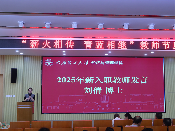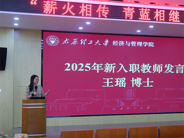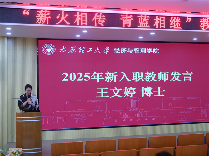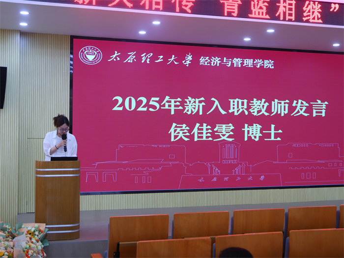 2025年新入职教师刘倩、王文婷、王瑶、侯佳雯博士依次发言,他们表达了对教师职业的憧憬与热爱,分享了入职后的体会与职业规划,决心以优秀前辈为榜样,在太原理工大学经管学院的平台上深耕教学科研,贡献自己的力量。