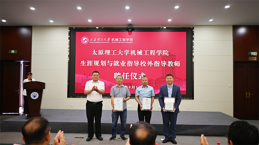 武佐君为贾晋云、闫桂名、许俊峰三位校友颁发“生涯规划与就业指导校外指导教师”聘书,邀请他们通过讲座、实习指导等形式,为学子搭建校园与职场的衔接桥梁,助力其职业发展。