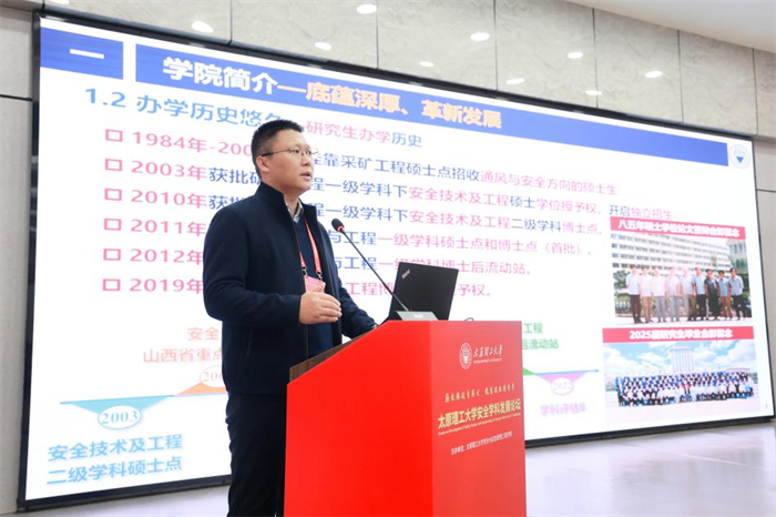 安全与应急管理工程学院院长杨威以《防患于未然,化险于无形,护航新时代发展》为题作学院发展情况报告。他从历史沿革、师资队伍建设、科学研究布局、创新人才培养体系、学生科创实践成果等多个维度,全面系统地展示了安全学院立足山西、面向全国、特色鲜明的发展图景,并表示学院将始终秉持“求实创新”的校训,锚定目标、奋楫笃行,为实现学院高质量内涵式发展、助力学校“双一流”建设作出新的更大贡献。