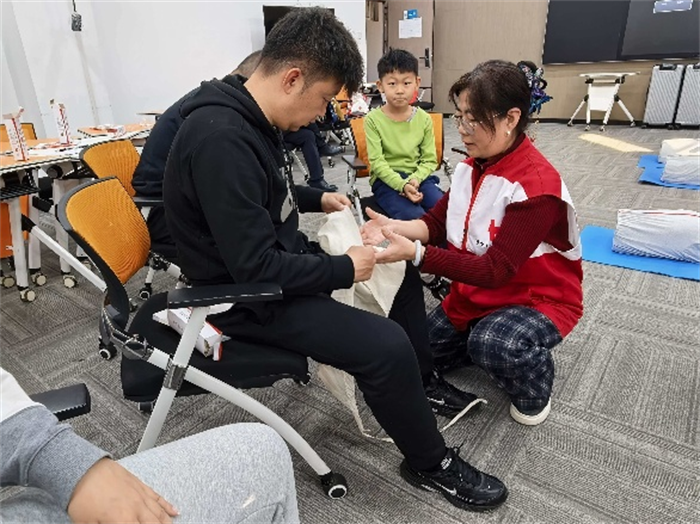 为普及应急救护知识,提升教职工应对突发事件和意外伤害的自救互救能力,进一步筑牢校园安全屏障,11月2日,体育与健康工程学院精心组织全院教师及行政人员,分校区参加了由山西省红十字会派遣专业讲师讲授的初级救护员培训。此次培训旨在通过系统化、规范化的教学与考核,打造一支具备基本应急救护技能的教职工队伍,为平安校园建设注入新的力量。培训活动分别在明向校区和虎峪校区同步进行,共计45名教职工积极参与。体育与健康工程学院院长张美珍也在虎峪校区与学院教师们一同认真参与了学习和实操,以实际行动彰显了对校园安全工作的深切关注。