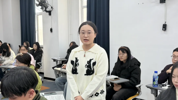 互动交流环节,来自马克思主义学院、安全与应急管理工程学院、数学学院、人工智能学院、建筑与艺术学院及计算机科学与技术学院等,具有不同学科背景的同学们,围绕“个人理想与国家发展的关系”“辩证唯物主义在科研困惑疏解中的运用”“马克思主义思想对人文素养的滋养”“‘两个结合’在文物修复中的指导作用”,以及“AI发展对人类影响的辩证看待”等议题展开深入交流,现场讨论热烈,思维碰撞活跃。
