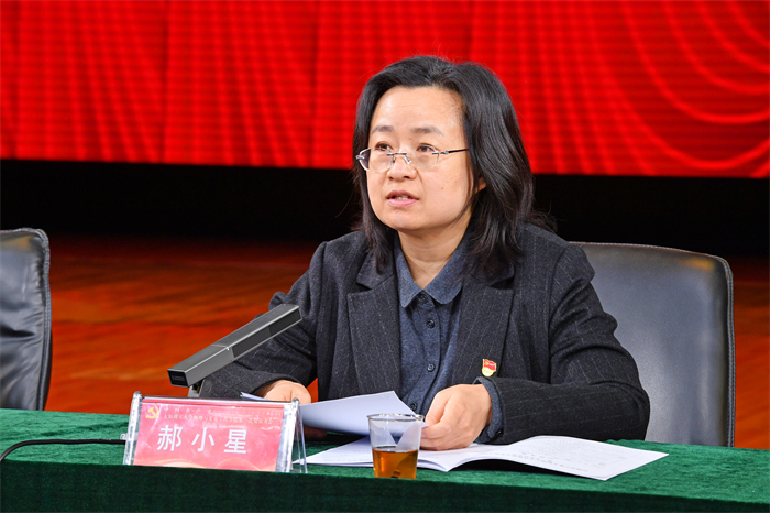 校党委常委、组织部部长郝小星代表校党委讲话。她向大会召开表示祝贺,对学院党委近年来的工作与成绩给予肯定,并对学院未来发展提出三点希望:一是坚持和加强党的全面领导,不断提高党建工作质量;二是深化理论武装,建设高素质党员和干部队伍;三是弘扬科学精神,增强创新动能,推动党建与中心工作深度融合,服务国家战略需求,为学校“双一流”建设和高质量发展贡献力量。