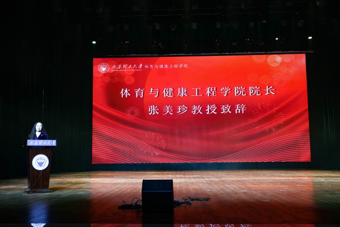张美珍教授代表学院致新年贺词,向一年来辛勤付出的教职员工和勤奋笃学的体育学子致以亲切的问候和诚挚的祝福。致辞中,张美珍系统总结了2025年体育与健康工程学院师生在人才培养、教学科研、体育竞技比赛等方面取得的丰硕成果,她指出这些成绩的取得不仅凝聚了全体体育人的心血,更彰显了体育人不畏困难,奋勇拼搏的精神底色,展望2026年,她号召全体体育人不忘初心、牢记使命,紧扣学校中心工作,砥砺深耕、笃行致远,为学校“双一流”建设贡献更大体育力量。