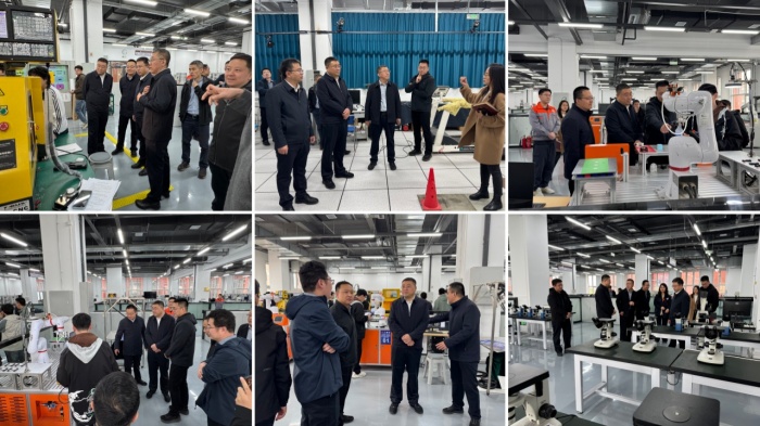 机械工程学院一行参观了天津科技大学人工智能基地与机械工程学院实验中心。李文辉院长全程陪同讲解,重点展示了虚实融合交互区、工业机器人实验室等核心功能区域,详细介绍了学院在数字孪生技术研发、智能装备创新、产教融合实践等方面取得的标志性成果。双方围绕实训课程体系设计、实践教学平台搭建等核心问题展开现场深入交流。
