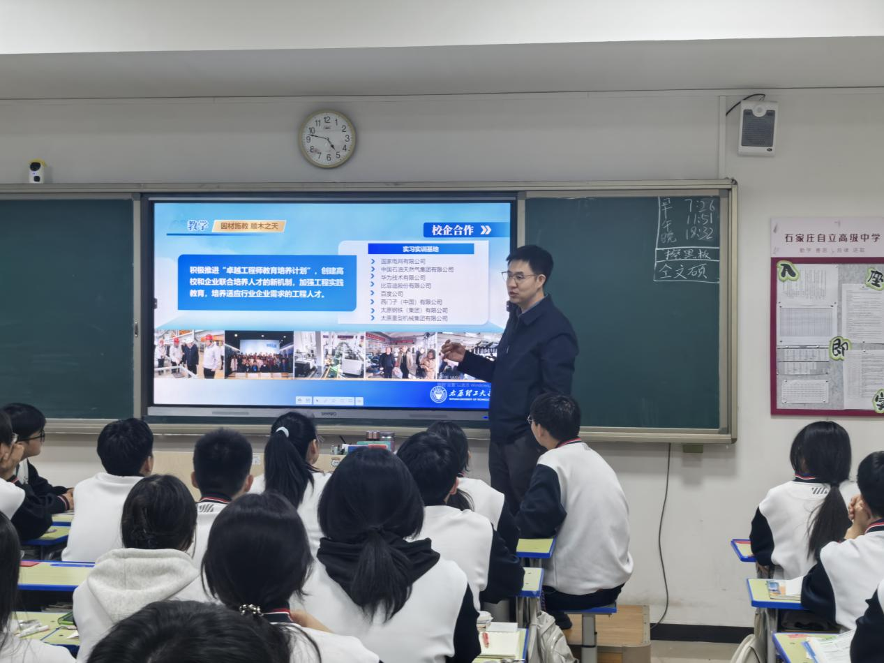 为搭建优质高校与优秀学子的精准对接桥梁,深入解读新高考招生政策,持续提升我校区域影响力,4月8日至9日,材料科学与工程学院智慧材料科学系主任牛宝龙、冶金工程系主任于彦冲赴河北省石家庄市开展招生宣讲活动,先后走进石家庄金石高级中学、石家庄金石实验中学、石家庄一中实验学校三所高中,为学生提供了兼具深度、温度与权威性的升学指导。