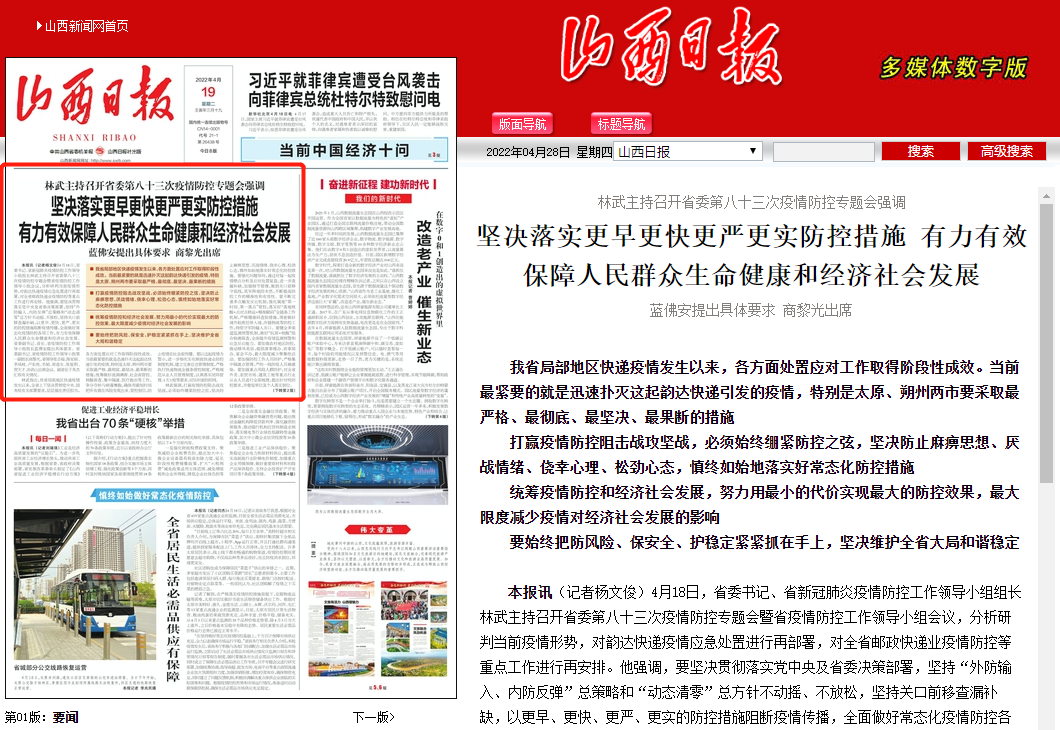 蓝佛安指出,各级各部门要深入学习贯彻习近平总书记关于疫情防控工作的重要指示批示精神,切实把思想和行动统一到党中央、国务院决策部署上来,按照省委工作要求,科学处置韵达快递疫情,快速阻断病毒传播链条。要健全外防输入机制,坚持“人物环境同防”,精准实施入晋返晋风险人员赋码管控,全流程做好国际航班经停入境闭环防控,加强冷链物流总仓管理,加快邮政快递物流总仓建设,坚决守住外防输入防线。要切实加强物流行业源头管控,严格落实总仓消杀、从业人员核酸检测等关键环节防控要求,压实寄递物流企业主体责任、市县属地责任、部门监管责任,最大限度消除病毒通过物流传播的风险。