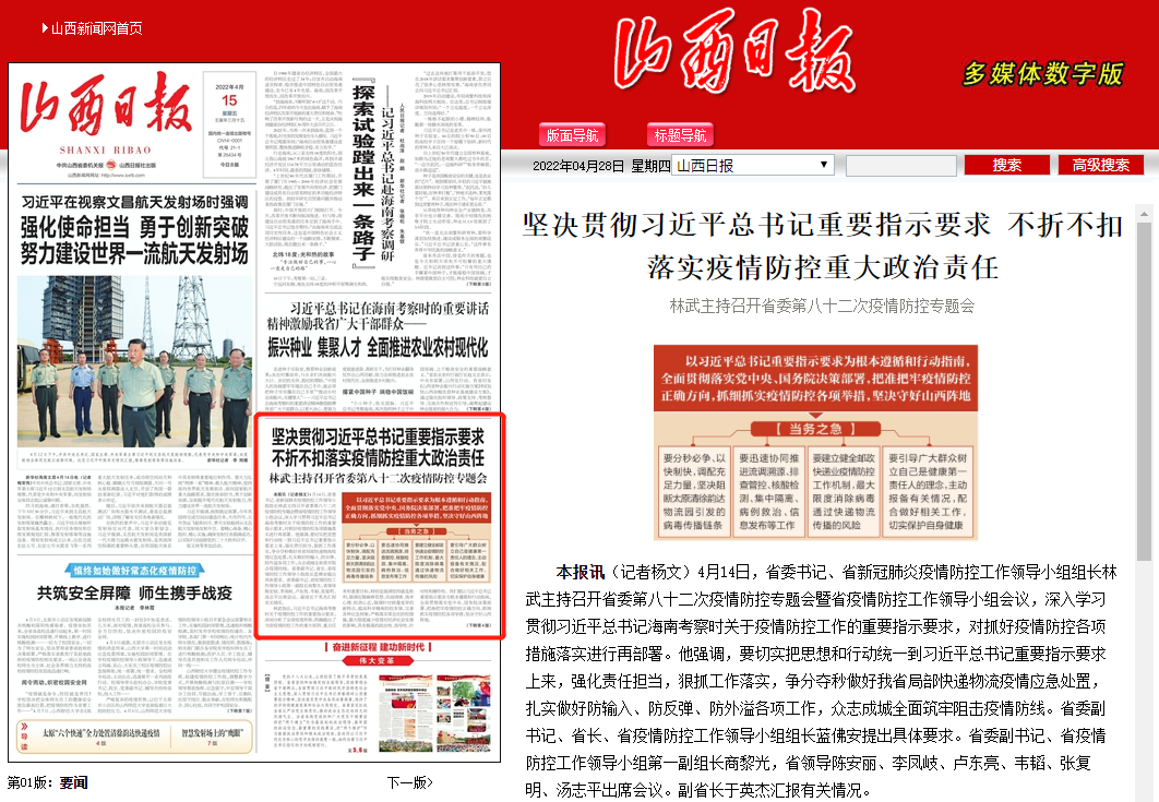 林武指出,习近平总书记海南考察时关于疫情防控工作的重要指示要求,深刻分析了全球疫情形势,明确提出了当前疫情防控工作的重大原则、重点任务和重要目标,特别是强调坚持就是胜利,强调克服麻痹思想、厌战情绪、侥幸心理、松劲心态,强调针对病毒变异的新特点,提高科学精准防控本领,完善各种应急预案,严格落实常态化防控措施,最大限度减少疫情对经济社会发展的影响,具有极强的政治性、指导性、针对性和操作性。我们要以习近平总书记重要指示要求为根本遵循和行动指南,全面贯彻落实党中央、国务院决策部署,把准把牢疫情防控正确方向,抓细抓实疫情防控各项举措,坚决守好山西阵地。