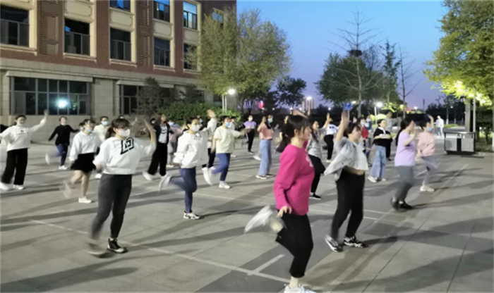 强健的体魄、充沛的精力是学习活力的保障,学院党委提出要让同学们“课堂学起来,课外动起来”。为了进一步活跃学生课余生活,鼓励积极开展体育锻炼,培养良好的运动习惯,倡导快乐学习生活,轻松战“疫”。自4月26日晚起,由院研究生会牵头在学院门前庭院内组织开展了每日健身活动。针对女生占比大的特点,健身教材选取当下同学们最关注、热度最高的网络健身达人教学视频,由文体部学生干部领跳,配以节奏鲜明、韵律动感的健身乐曲,吸引众多同学参与其中。活动现场活力四射、尽展青春,大家在进行体育锻炼的同时,也舒缓了紧张的心情,轻松地面对疫情。