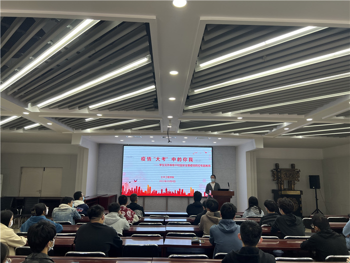 为进一步落实学校疫情防控政策,充分发挥学生党员、干部先锋模范作用,精准有效开展学生防疫工作,10月4日,土木工程学院在学院五层会议室开展疫情“大考”中的你我——学生党员等骨干校园安全暨疫情防控专题教育。在校辅导员和本研学生党员、干部代表参加。专题教育由院党委副书记芦倩开讲。